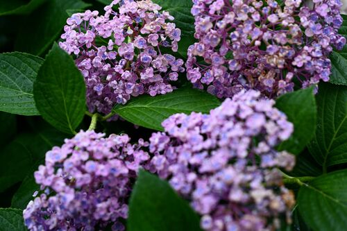 雨の中、二条城で少しビンテージ化した紫陽花と新緑を撮ってきました。